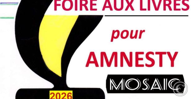 Le groupe de Lisieux Pays d'Auge organise une FOIRE AUX LIVRES au bénéfice d'Amnesty international, à Lisieux salle MOSAIC 14 Boulevard Pasteur. Don de livres possibles dès le Mardi 13 octobre 2026 à la salle MOSAIC ou toute l'année en appelant le 07 45 10 76 04