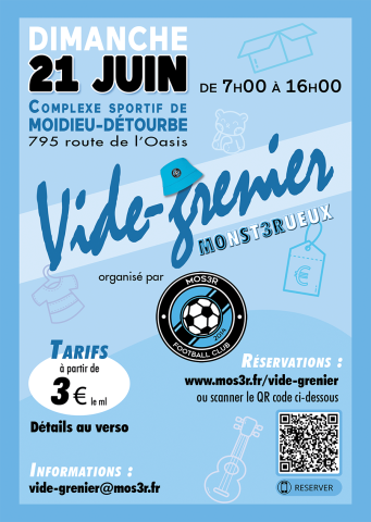 Le MOS3R Football Club organise son vide-grenier MOnSt3Rueux le 21 juin 2026 au complexe sportif et salle des fête de Moidieu-Détourbe.
