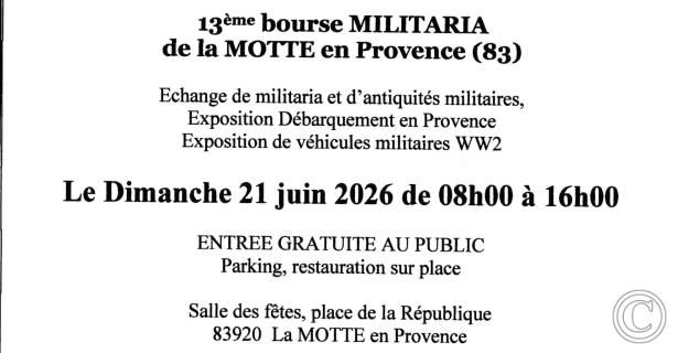 13ème bourse d'échange militaria. place de la république (salle des fêtes) 83920 LA MOTTE EN PTOVENCE