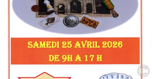 Vous trouverez : Timbres, cartes postales, muselets de champagne, pin's, jouets anciens, télécartes, insignes, BD, fèves, vieux papiers, livres anciens, monnaies et billets, trains et voitures miniatures, minéraux... et bien d'autres choses !