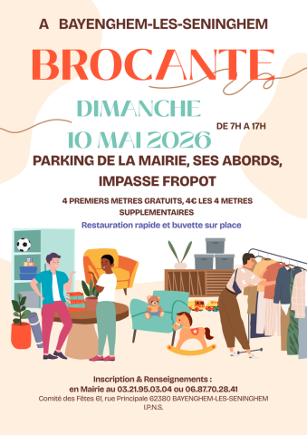 📣 Brocantes le Dimanche 10 mai 2026 à Bayenghem-lès-Seninghem 62380 #AnnonceGratuite Objets d'occasion #Brocantes #LeChineur