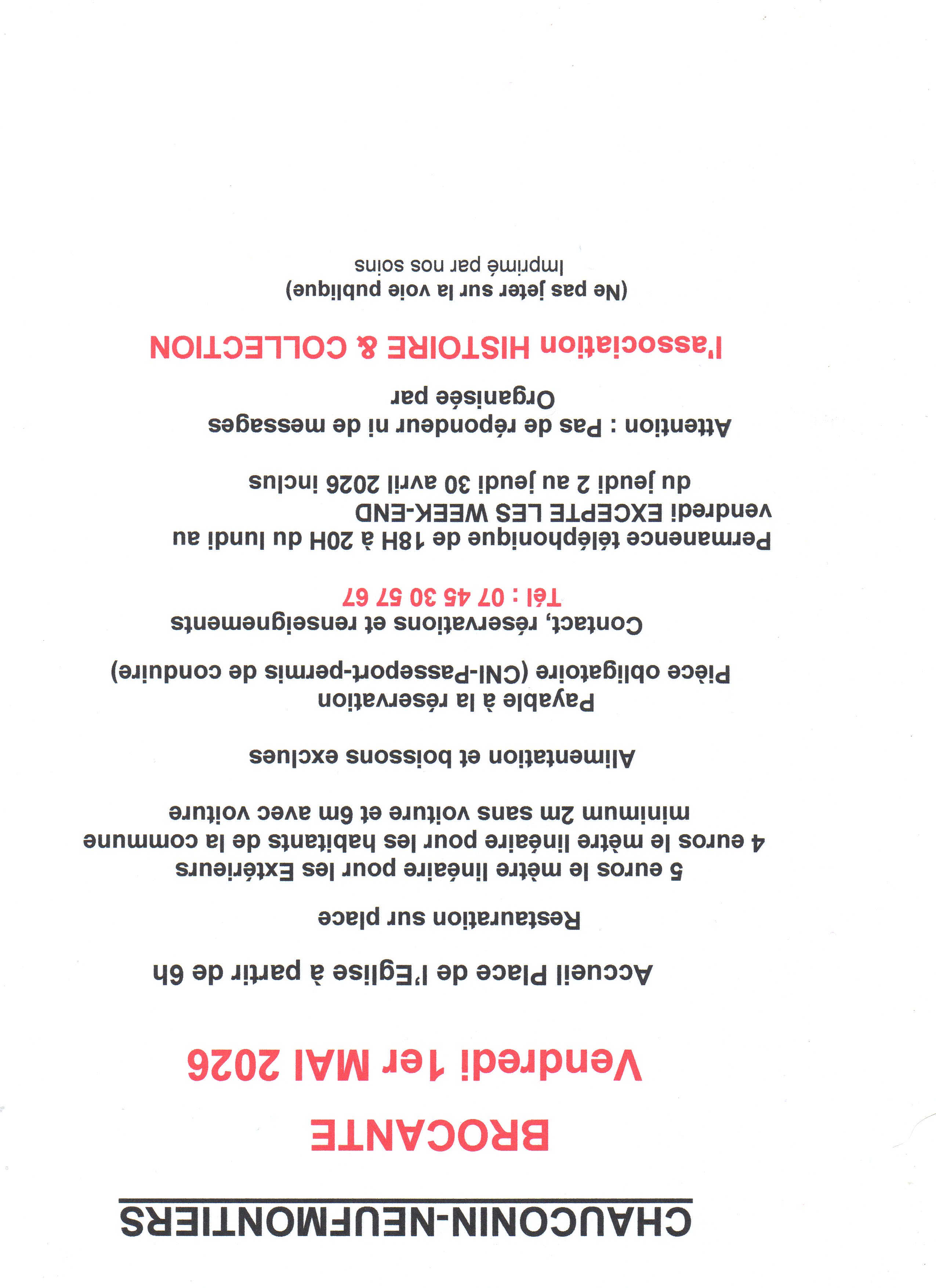 L'association Histoire et Collection organise sa brocante annuelle à Chauconin Neufmontiers (77124) près de Meaux le 1er Mai 2026