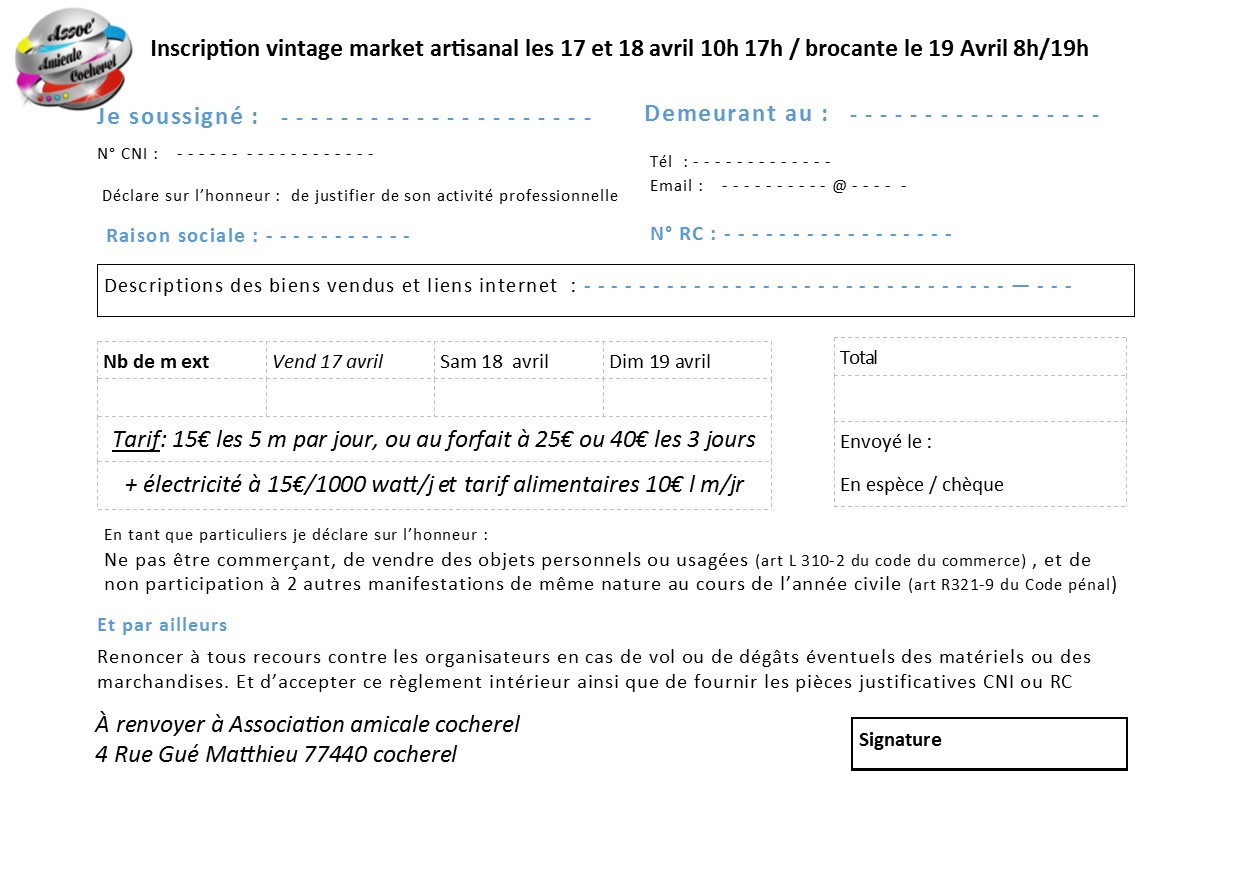 📣 Brocantes le Vendredi 17 avril 2026 à COCHEREL 77440 #AnnonceGratuite Objets d'occasion #Brocantes #LeChineur