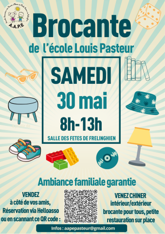 L’Association des Parents d’Élèves (AAPE) de l’école Louis Pasteur à Frelinghien organise sa brocante conviviale !