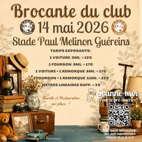 La brocante - vide grenier de Guéreins débarque le 14 mai 2025 au Stade Paul Melinon (01090 Guéreins) !