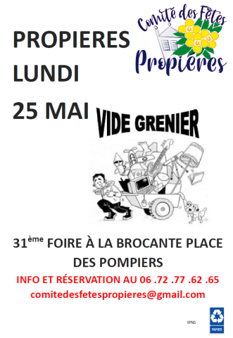 📣 Brocantes le Lundi 25 mai 2026 à propieres 69790 #AnnonceGratuite Objets d'occasion #Brocantes #LeChineur