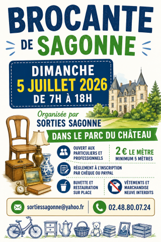 📣 Brocantes le Dimanche 5 juillet 2026 à Sagonne 18600 #AnnonceGratuite Objets d'occasion #Brocantes #LeChineur