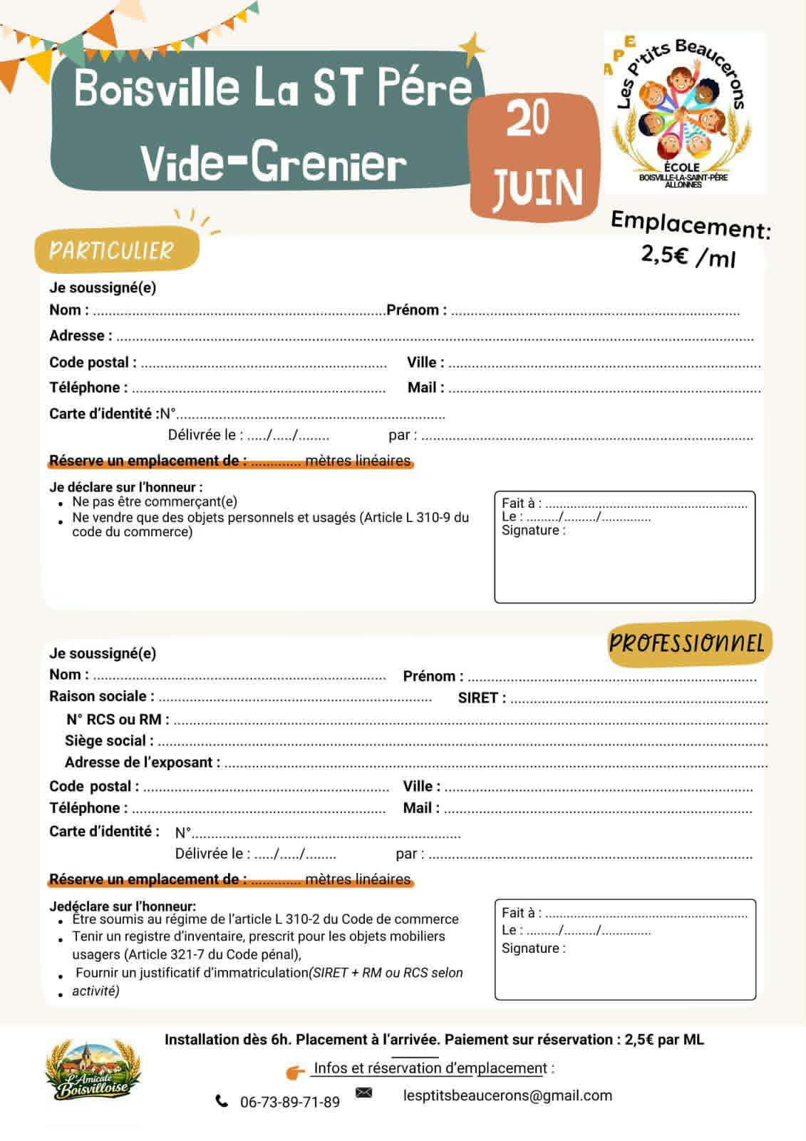 📣 Vide-Greniers le Samedi 20 juin 2026 à Boisville-la-Saint-Père 28150 #AnnonceGratuite Objets d'occasion #VideGreniers #LeChineur