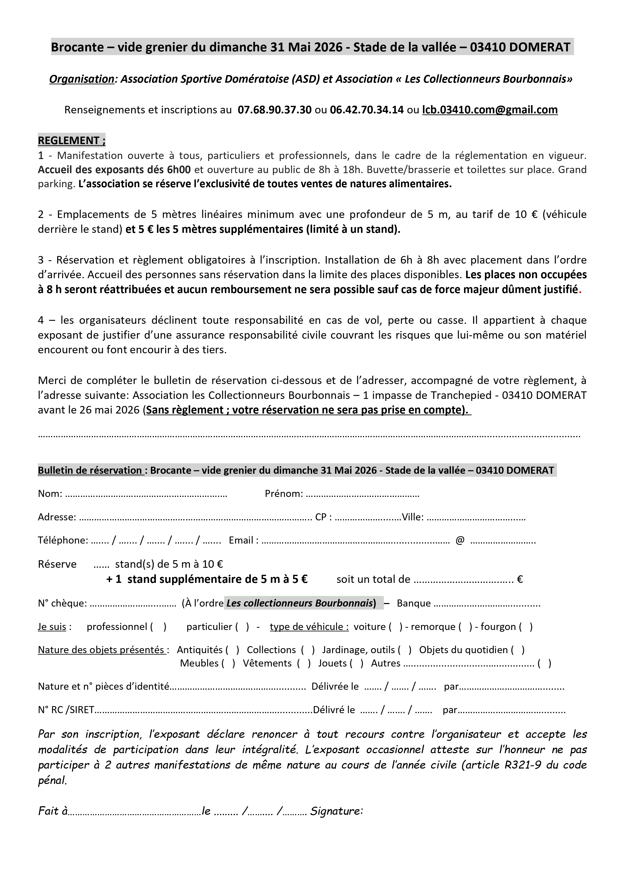 📣 Vide-Greniers le Dimanche 31 mai 2026 à DOMERAT 03410 #AnnonceGratuite Objets d'occasion #VideGreniers #LeChineur