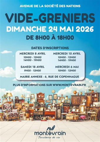 📣 Vide-Greniers le Dimanche 24 mai 2026 à Montévrain 77144 #AnnonceGratuite Objets d'occasion #VideGreniers #LeChineur