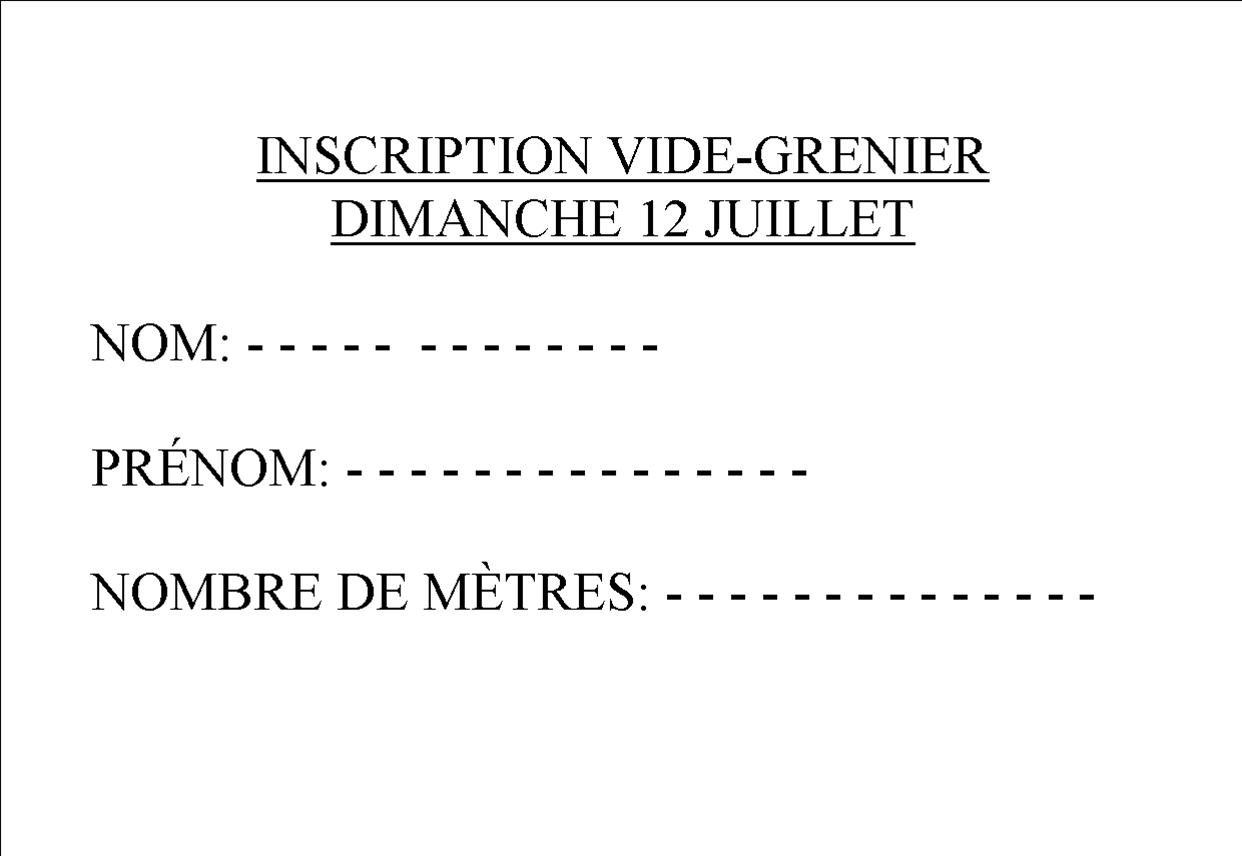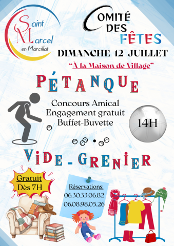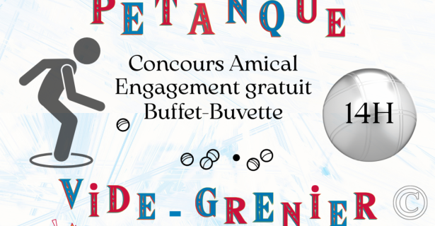 7h pour le vide-grenier et 14h pour la pétanque (pétanque inscriptions sur place)