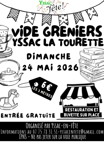 📣 Vide-Greniers le Dimanche 24 mai 2026 à Yssac-la-Tourette 63200 #AnnonceGratuite Objets d'occasion #VideGreniers #LeChineur